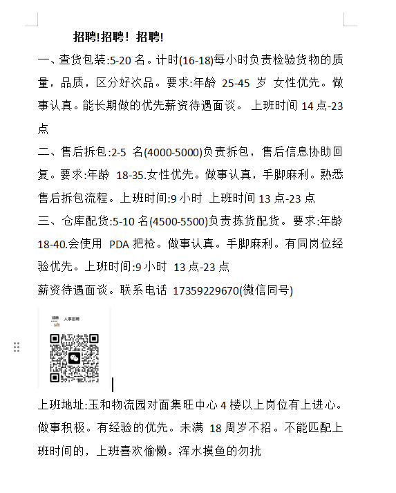 仓库配货工,查货包装工,售后拆包工,