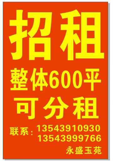 招租 整体600平可分租,乔南红龙向南50米永盛玉苑,...
