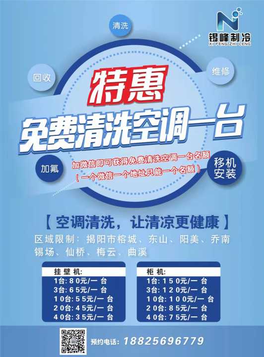 锡峰制冷年度钜惠首加微信免费清洗空调一台专业团队,...
